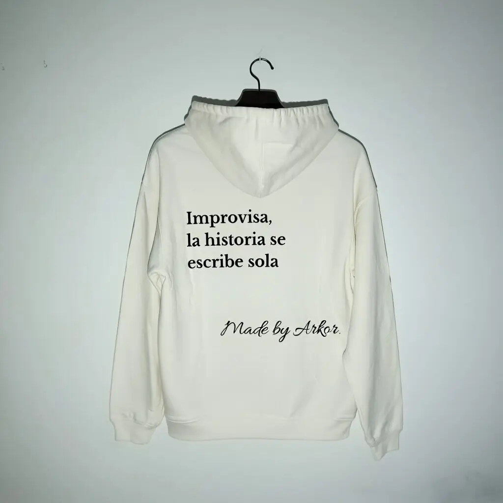La sudadera cream oversize ARKØR ESSENCE Improvise Edition es una prenda pensada para quienes fluyen con la vida, confían en el momento y llevan el streetwear con personalidad propia.